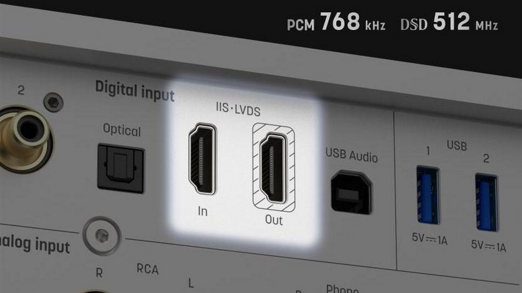 - Оптичний коаксіальний, USB-аудіовхід і входи IIS-LVDS