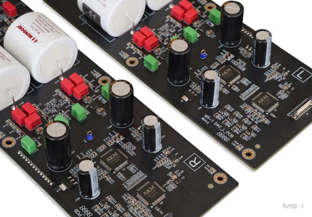 Стример MS-1 Pre також отримав незалежний модуль ЦАП для лівого і правого каналів - два чіпи AK4191 + AK4499 від AKM. Крім того, в системі встановлений регулятор гучності з прецизійною резистивною матрицею - чотири незалежних регулятори гучності на базі герконових реле з низьким рівнем шуму. Коефіцієнт підсилення +10 дБ