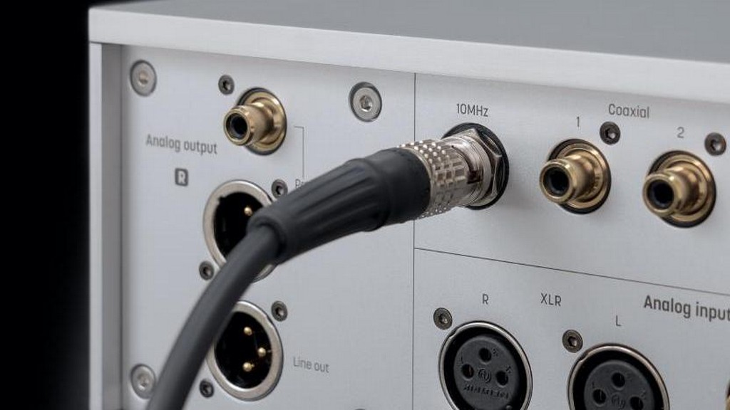 Задіяна високопродуктивна система повторної синхронізації, схема для DPLL і вхідний порт синхронізації BNC, частота 10 МГц. З'єднання - коаксіальний кабель з опором 50 Ом.