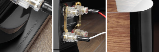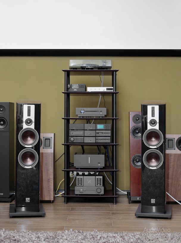 Мы взяли для прослушивания самые компактные «башни» серии Epicon. Да, цена – как у небольшого автомобиля, а стиль исполнения напоминает дорогущие украшения интерьера. Но взгляните, до чего ж умно и изящно они сделаны. Капитально задемпфированные корпуса с изогнутыми и сужающимися к задней панели боковинами покрыты натуральным шпоном, лаком и идеально отполированы. Сложная тыловая часть, плавно переходящая в платформу, выглядит солидно и необычно не только сама по себе – она заодно обеспечивает дополнительную виброразвязку всех элементов акустического оформления и кроссоверной секции. Ровно напротив басовых головок в тыльной части отформованы раструбы фазоинверторов, а снизу смонтирован основательный бай-вайринговый терминал для акустических кабелей. Верхняя панель — с наклоном вперёд, чтобы устранить «органный» резонанс. Внушительно выглядит и массивная передняя плита с драйверами, и само основание, которое из-за немалой ширины может доставить некоторые проблемы при инсталляции в небольшом помещении, зато обеспечит максимальную устойчивость. О сложности конструкции говорят два интересных факта: лицевой щит сделан из двух слоев MDF разной толщины, а задний – из шести! Добавьте теперь изысканную отделку, которая выполняется вручную датскими мастерами, и станет ясно, почему «Эпиконы» столь недешевы.