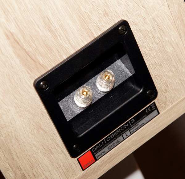DALI Oberon 3 – достаточно увесистые колонки, их размеры - 350 х 200 х 315 мм, масса одной АС составляет внушительные 6,3 кг. Перед нами – традиционная двухполосная фазоинверсная система: на СЧ/НЧ работает 7-дюймовый динамик с диффузором из армированной древесными волокнами лакированной целлюлозы, на ВЧ трудится купольный твитер диаметром 29 мм. Эти очень легкие мягкие купола были специально разработаны для серии OBERON, их главное преимущество в низкой резонансной частоте и отличном согласовании с СЧ/НЧ-головкой. Частота раздела кроссовера у DALI Oberon 3 составляет 2 400 Гц, нижняя граничная частота настройки фазоинвертора – 49 Гц. Колонки имеют сопротивление в 6 Ом и чувствительность в 87 дБ (2,83 V/1м), что требует довольно стабильного партнера для усиления. Как следствие, и рекомендуемая подводимая мощность весьма велика для полочных колонок – АС выдерживают аж до 150 Вт.