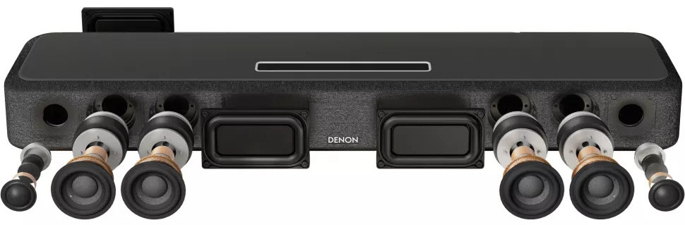 Но и самого ресивера в домашнем кинотеатре на базе системы Denon Home тоже нет! По сути, его заменяет Sound Bar 550. Он получает аудиосигнал с телевизора, а затем декодирует его для распределения по всем компонентам беспроводного домашнего кинотеатра.