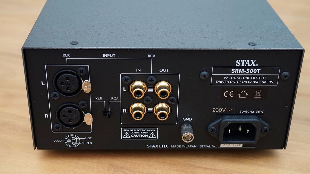 На задній панелі розташовані роз'єми, зокрема незбалансований вхід RCA і збалансований вхід XLR. Таким чином, можна під'єднувати джерела за вашим вибором, як-от програвач компакт-дисків, мережевий програвач, аудіо ЦАП або навіть попередньо посилений програвач. Нарешті, також включений вихід RCA, так що ви можете використовувати підсилювач Stax SRM-500T між джерелами і системою hi-fi, наприклад.