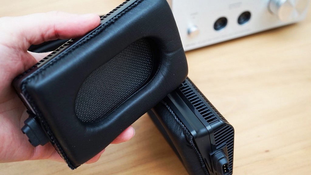 Комфорт навушників Stax Lambda SR-L500 MK також досягається за рахунок їхніх великих амбушур, які ефективно охоплюють вуха, особливо зверху і знизу. Підкладка не особливо товста, але дуже м'яка, щоб уникнути неприємного тиску. Покриття зі штучної шкіри також забезпечує м'якість і приємне відчуття.