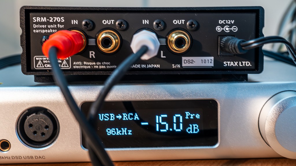 Налаштування SRM-270S було простим. Два кабелі RCA, що додаються, підключаються до виходів RCA джерела аналогового сигналу, а потім до роз'ємів RCA-in на задній панелі SRM-280S. Кабель динаміка під'єднується до SR-X1 за допомогою фіксувального язичка; вони під'єднуються тільки в одному напрямку, тому положення «ліве-праве» завжди будуть правильними. Мітки Брайля на лівій чашці також роблять підключення кабелів надійним.