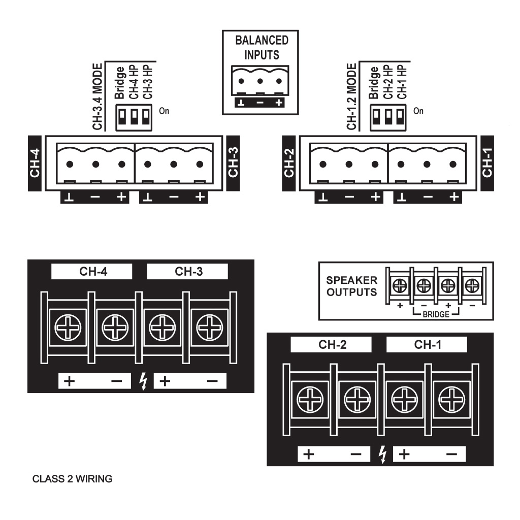 • Режим High-Z: 4 x 3000 Вт (100Vrms/140Vpeak)