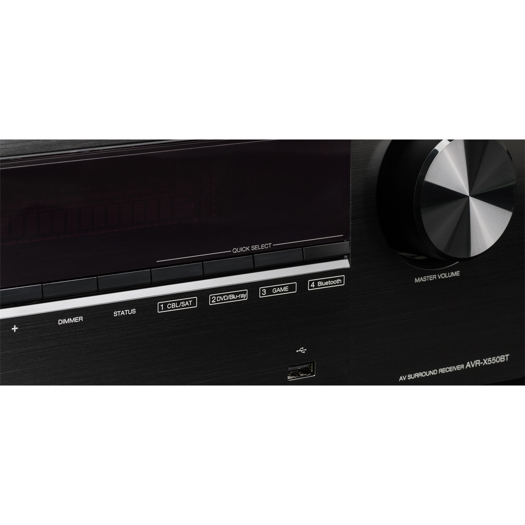 В дополнение к многочисленным аналоговым и цифровым AV-разъемам, AVR-X550BT имеет удобный USB-порт на передней панели, совместимый с портативными USB-устройствами, и может воспроизводить широкий спектр аудиофайлов, включая MP3, WMA, FLAC и MPEG-4/AAC.